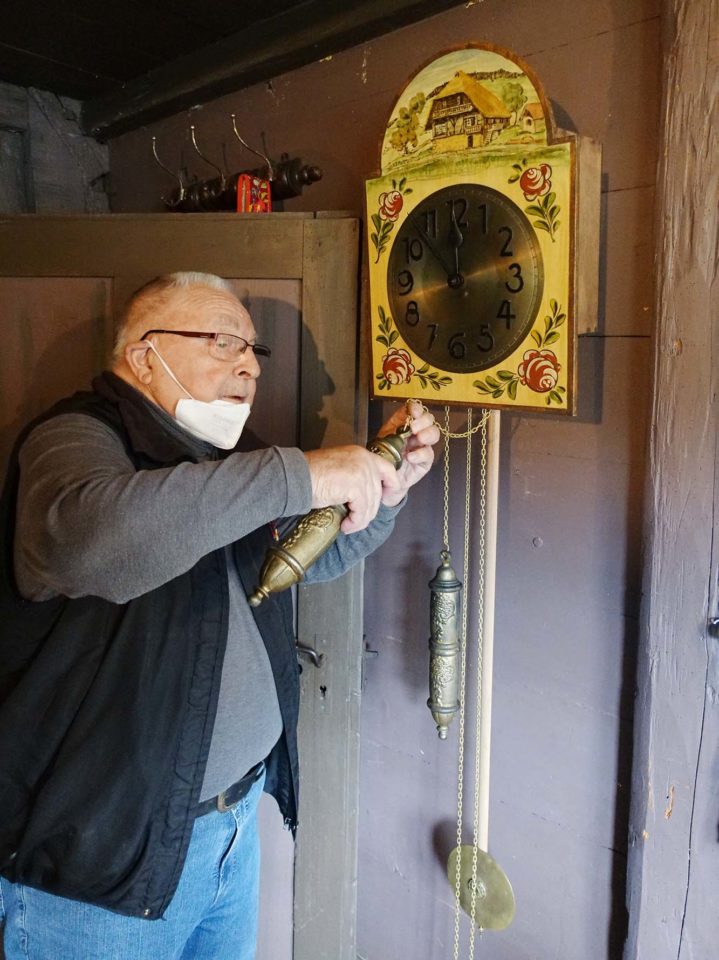 Da freuen sich die Museumsbesucher. Ernst Krezdorn, gelernter Uhrmacher und zusammen mit seiner Frau Annemarie langjähriges Mitglied des Museumsteams hat wieder eine der kostbarsten Uhren im Heimatmuseum Fürstenberger Hof repariert und zum Laufen gebracht.