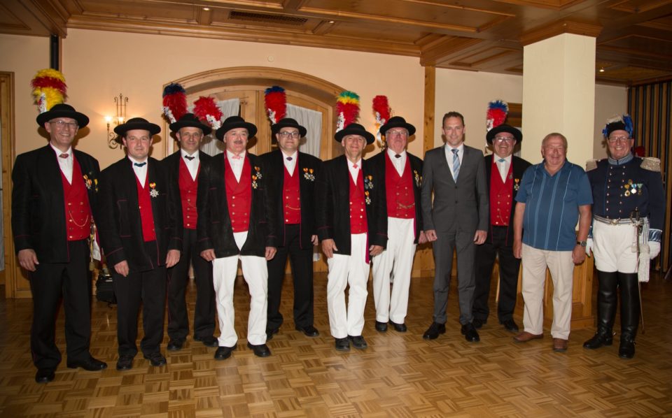 Die Historische Bürgerwehr ehrt ihre Mitglieder, wenn sie sich von ihrer besten Seite zeigen kann. Zum Ausklang des Fronleichnamstages wurden im Stubensaal unter anderem drei langjährige Mitglieder für ihre Verdienste in der Historischen Bürgerwehr zu Ehrenmitgliedern ernannt.