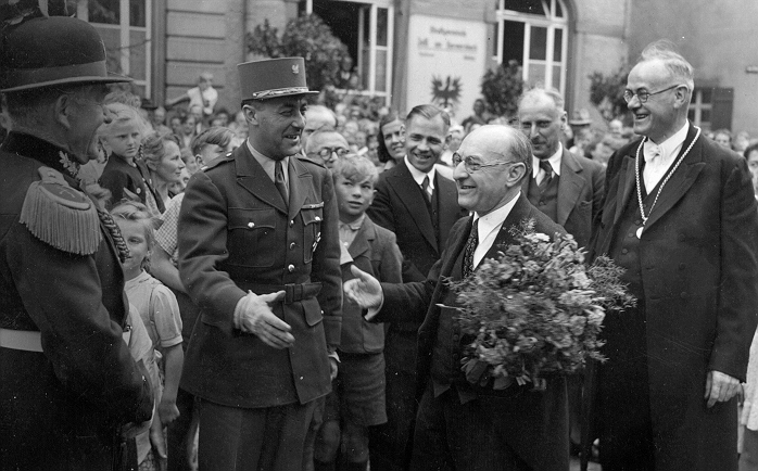 Nach der Befreiung von der Diktatur des Nationalsozialismus setzte die Französische Besatzungsmacht im August 1945 zunächst Hermann Seifert zum Bürgermeister ein. Wenig später trat Stadtrechner Hans Arnold dieses Amt an. Er war bei den ersten demokratischen Wahlen nach dem Krieg im September 1945 in den Gemeinderat gewählt worden.