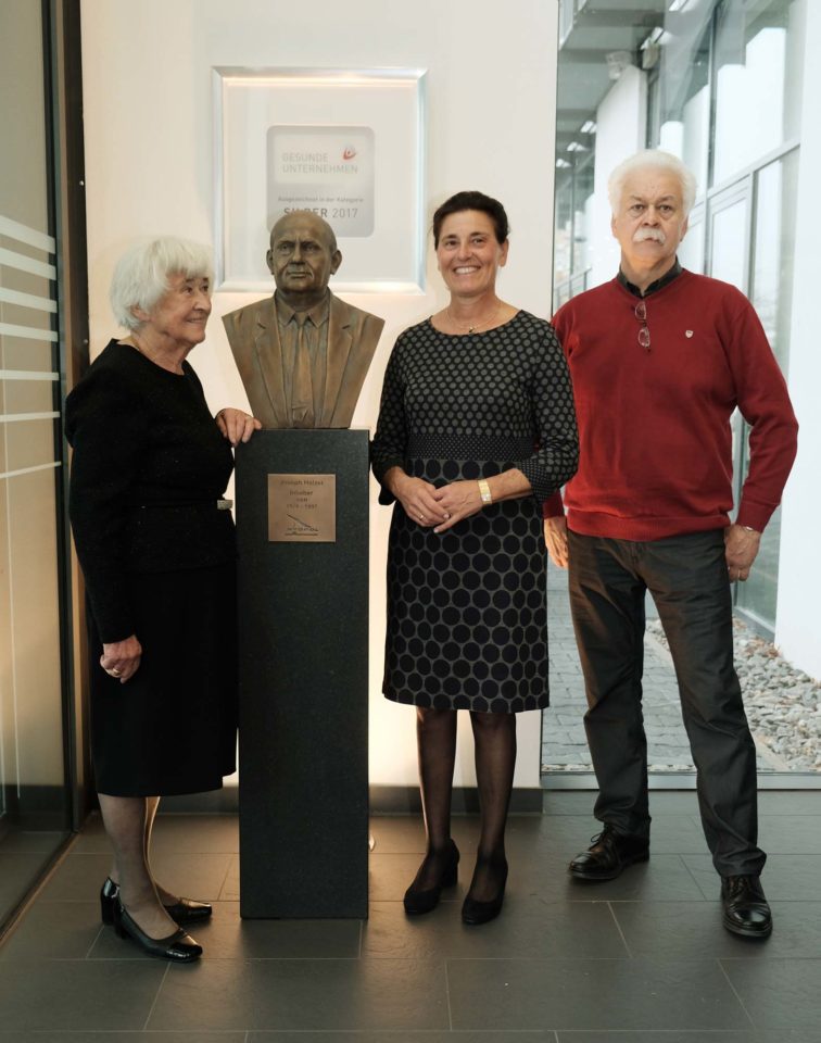 In ein neues, altes Gesicht haben die Hydroianer heute morgen geblickt, wenn sie den Hydro-Tower betreten haben: Im Eingangsbereich steht eine Bronze-Büste von Josef Holzer, ein Herzensprojekt von Barbara Huttegger und Hilde Holzer. Sie wurde am Freitag im Rahmen der Jubilarsfeier eingeweiht.