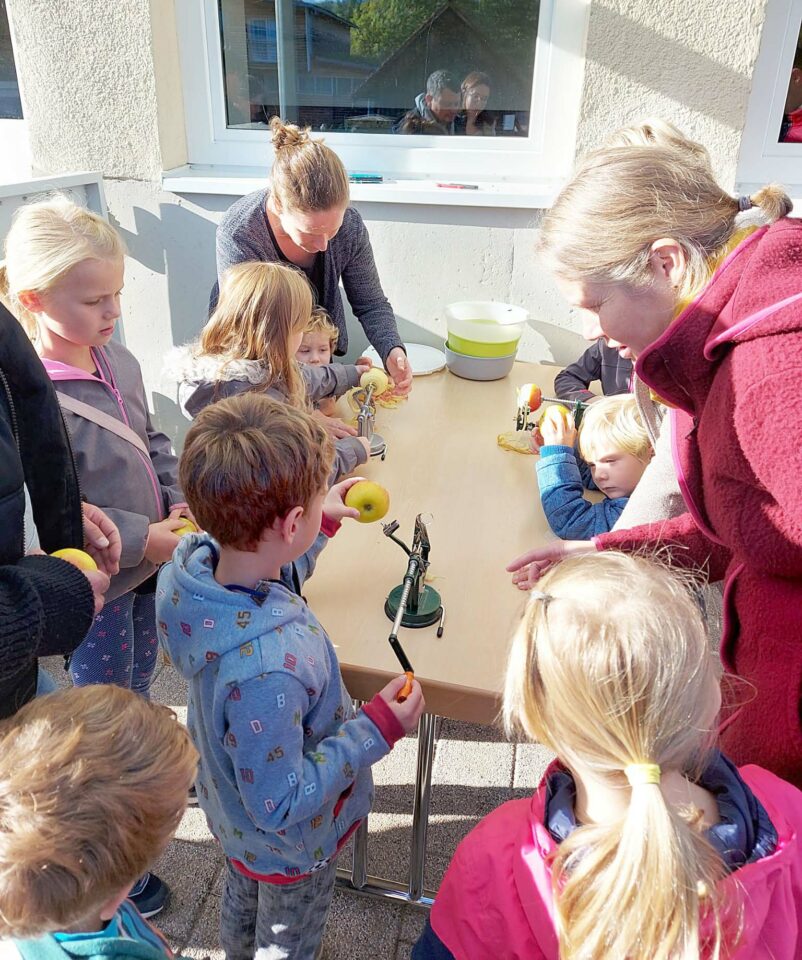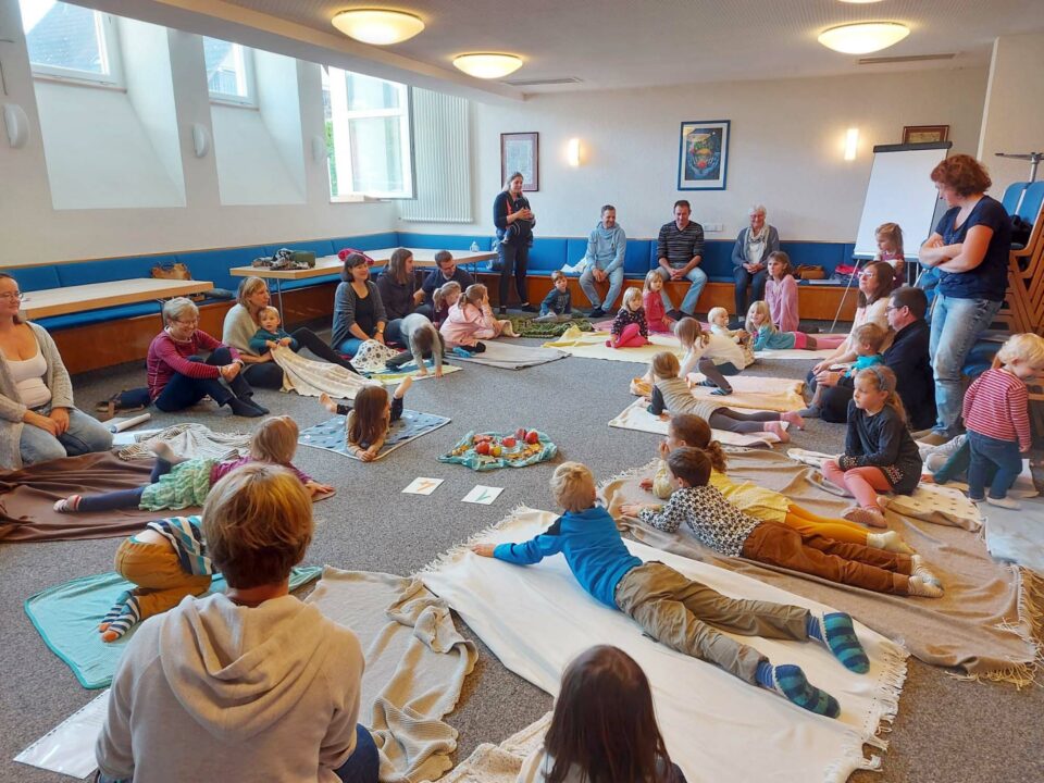 Um die dreißig Kinder kamen am Sonntag mit ihren (Groß-)Eltern zum Wortgottesdienst in die Kinderkirche. Nach einer Einstimmung auf den Herbst zog sie ein kleines Figurenspiel in ihren Bann: Sie erfuhren die Geschichte vom Mäuschen, das sich sehr wohl fühlt in seinem kleinen Apfelhaus.