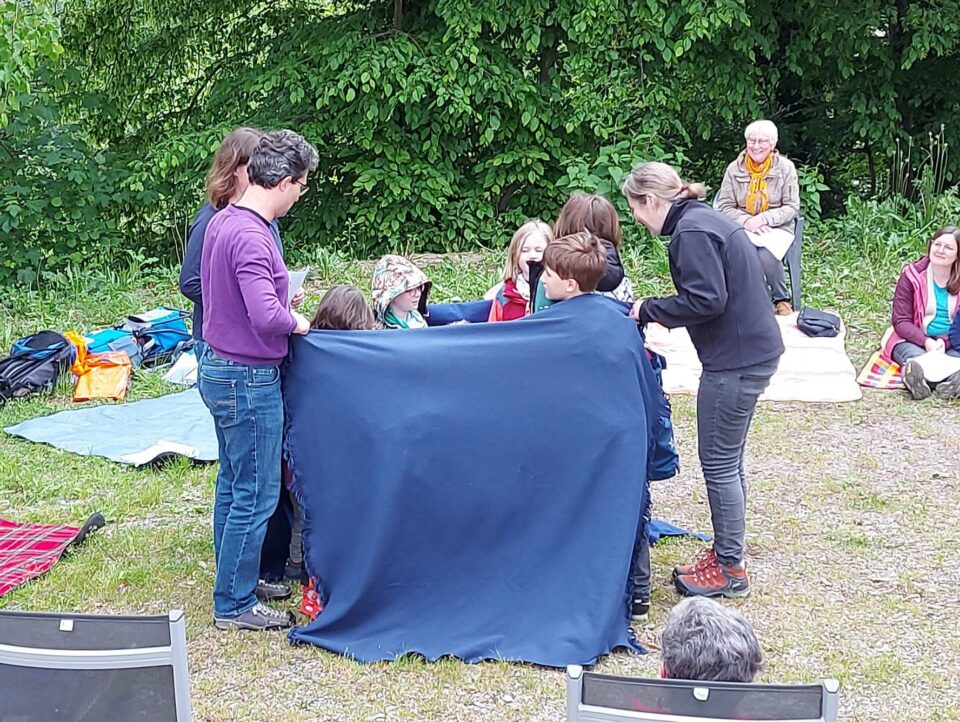 Bei der Maiandacht stecken alle Kinder unter einer Decke?