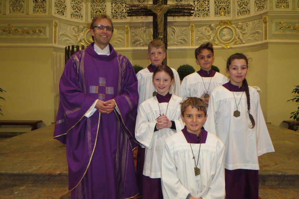 Am Sonntag, 18. März, wurden die neuen Ministranten in ihren Dienst eingeführt. Sie haben im Frühjahr ihre Erstkommunion gefeiert, danach von den älteren Ministranten ihre Ausbildung erhalten und freuen sich nun auf ihre ersten Einsätze am Altar. Manuela Zeferer wurde als neue Kommunionhelferin und Lektorin der Gemeinde vorgestellt.