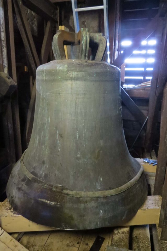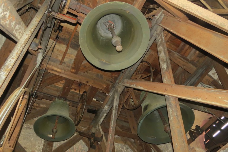 Im Glockenturm der Pfarrkirche werden die Sanierungsarbeiten des zweiten Bauabschnittes erledigt. Die Glocken sind abgehängt; ihre Trägerkonstruktion wird erneuert.