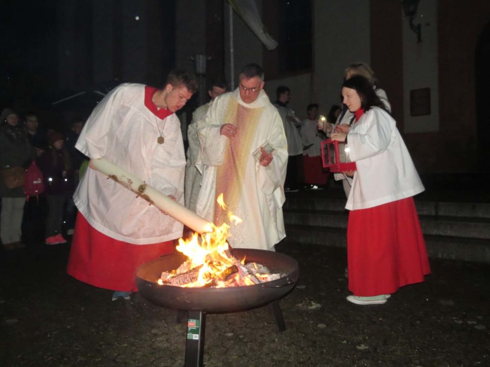 Die Auferstehungsfeier am Ostersonntag begann um 6 Uhr am Osterfeuer auf dem Kirchplatz. Der Festgottesdienst wurde von Pfarrer Bonaventura Gerner und Bruder Pirmin geleitet. Das anschließende Frühstück ist zu einer beliebten Tradition geworden.