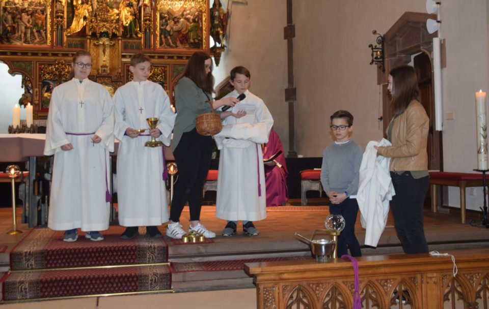 Beim Gottesdienst am Sonntagmorgen stand der Ministrantendienst im Mittelpunkt. Pfarrer Peter Seibt sagte eingangs, dass heute ein Tag der Freude sei, da Max Vollmer als neuer Ministrant aufgenommen werden könne.