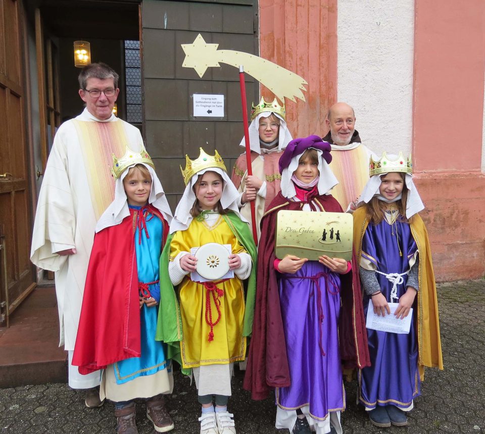 Am Feiertag »Heilige Drei Könige« haben die Sternsinger in den Gottesdiensten in der Zeller Pfarrkirche am Vormittag und in der Wallfahrtskirche am Abend mitgewirkt. Nach einem Anspiel, in dem sie ihre Gaben Gold, Weihrauch und Myrrhe vorstellten, sangen sie das traditionelle Sternsingerlied »Wir kommen daher aus dem Morgenland«.