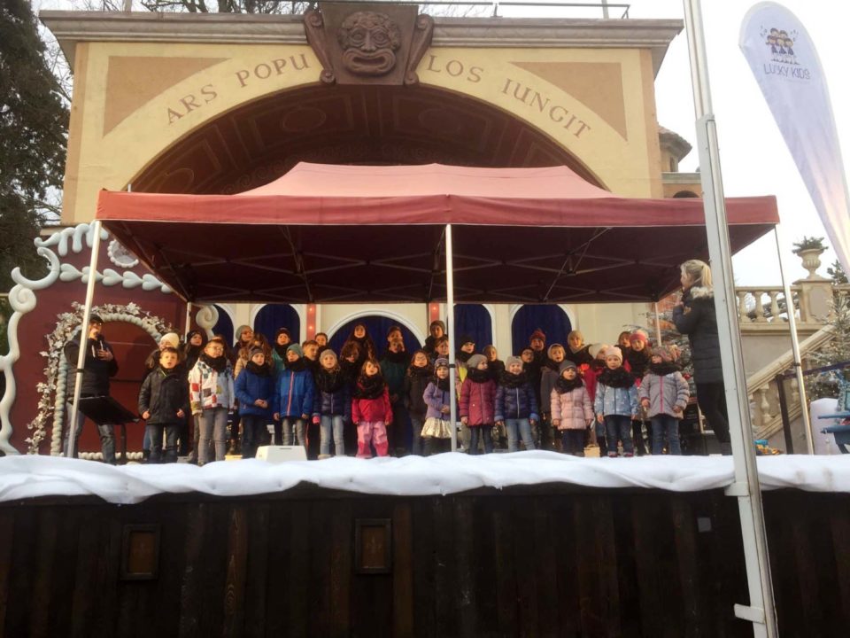 Dafür hatten die 38 Lucky Kids mit ihren Leitern Katharina Künzel und Steffen Ben Aissa wochenlang geprobt und ihrem großen Auftritt im Europapark entgegengefiebert. Doch am Sonntag war es endlich soweit. Begleitet von einer großen Fangemeinde, den Eltern, Großeltern, Geschwistern, absolvierten die Lucky Kids ihren ersten Auftritt im weihnachtlich geschmückten Europapark Rust mit Bravour.