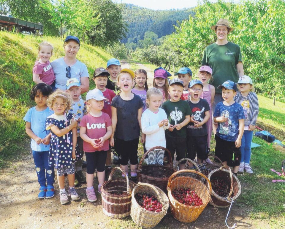 Vor einigen Tagen machte sich die Sternengruppe aus dem Kindergarten »Kleine Wolke« mit ihren Erzieherinnen auf den Weg zur Kirschbaum-Plantage der Familie Isenmann in Hippersbach. Sie folgten einer Einladung zum Kirschenpflücken.