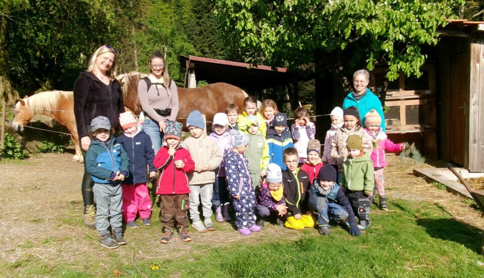 Die Sonnengruppe des Kindergartens »Kleine Wolke« in Unterharmersbach besuchte den Bauernhof von Familie Pfundstein im Knopfholz.
