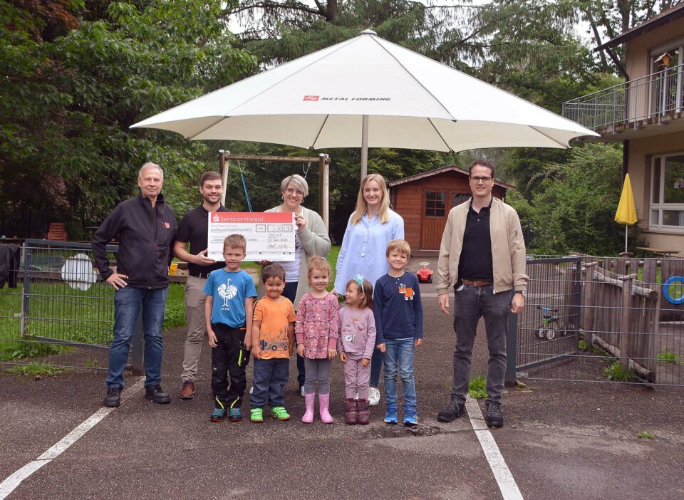 Firma AAM spendet dem Kindergarten „Kleinen Wolke“ einen Beschattungsschirm.