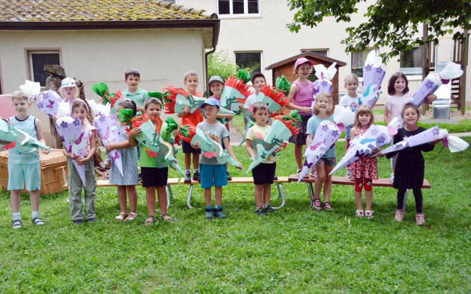 Fröhliche Verabschiedung von 17 Schulanfängern im Kindergarten „Kleine Wolke“.