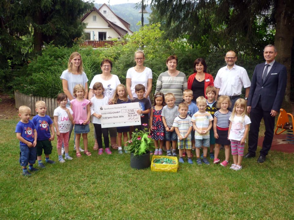 Die Kinder, Erzieher und Elternvertreter des Unterharmersbacher Kindergarten »Kleine Wolke« durftren sich über eine Spende in Höhe von 1.500 Euro freuen.