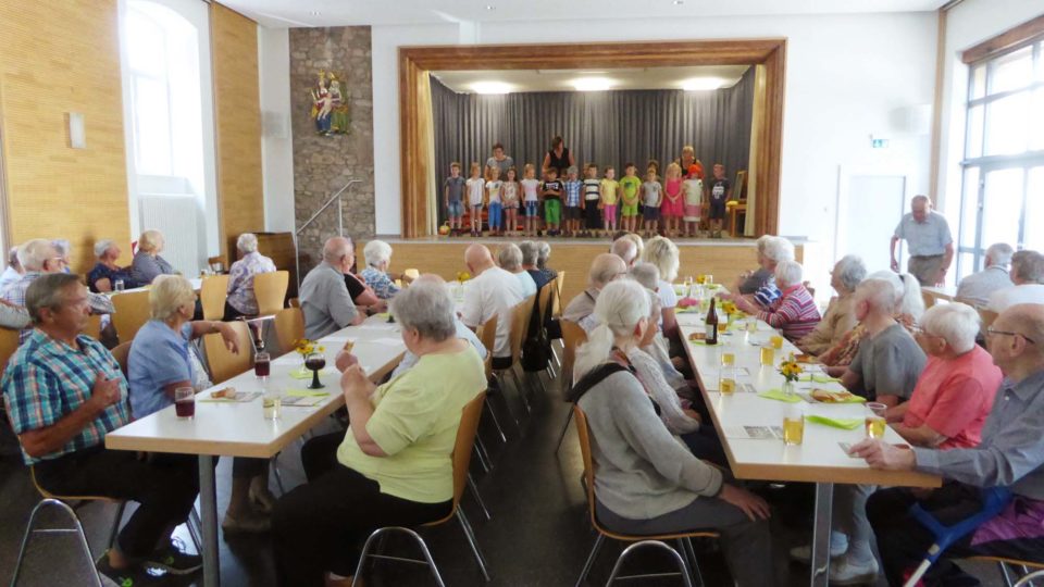 Ein unterhaltsames Sommerfest beim Altenwerk Zell bescherten 21 Mädchen und Jungen des Kindergarten „Kleine Wolke“ aus Unterharmersbach rund 60 Seniorinnen und Senioren sowie Bewohnern des Seniorenzentrums St. Gallus und des betreuten Wohnens im Pfarrheim St. Symphorian.