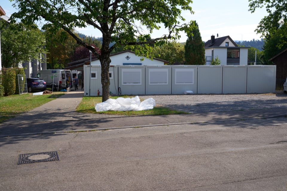 Wie bereits im Vorfeld berichtet, ist der Bedarf an Kita-Plätzen in Biberach so groß, dass die vorhandenen drei Kindertagesstätten dies nicht stemmen können. Die im Bau befindliche neue Kita östlich der Bahnlinie wird nicht schnell genug fertig werden können. Die provisorische Erweiterung wurde am Wochenende fertiggestellt.