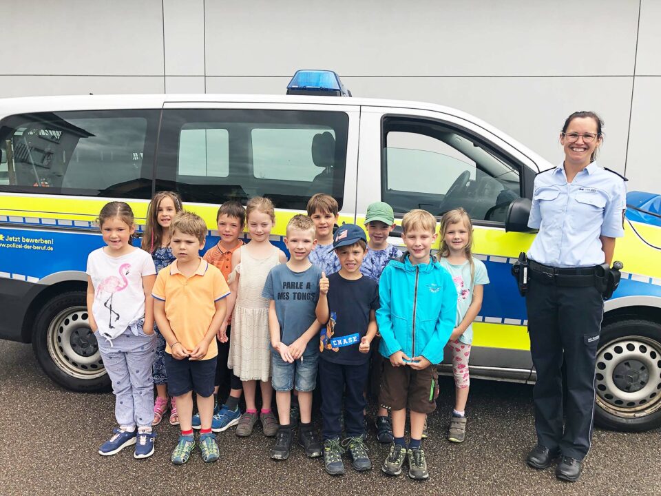 Die Schulanfänger des Kindergartens St. Barbara aus Biberach machten sich auf, um nach der Zugfahrt nach Haslach, das dortige Polizeirevier Haslach zu erkunden. Gemeinsam mit Polizisten werden den Kindern alle Fragen beantwortet, rund um Sicherheit und die Arbeit eines Polizisten. Als großes Highlight dürfen die Kinder am Ende in den Polizeiautos mitfahren.