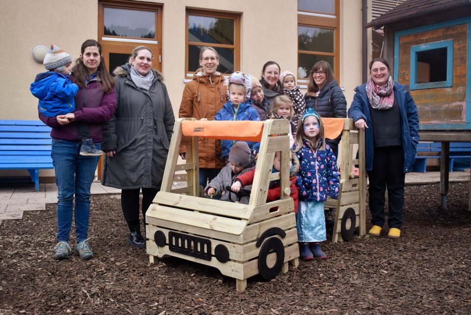 Elternbeirat und Familie Zürn finanzierten ein „Camping Car“ für den Nordracher Kindergarten.