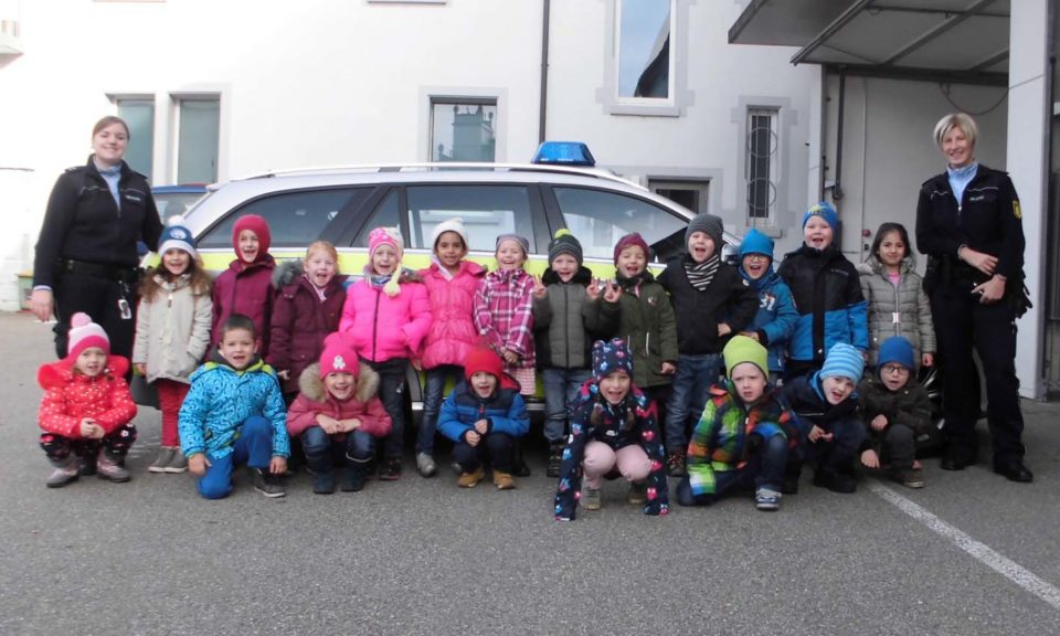 Die Schulanfänger des Kindergartens Villa Regenbogen besuchten das Polizeirevier in Haslach.
