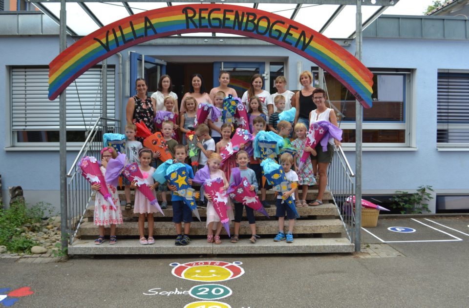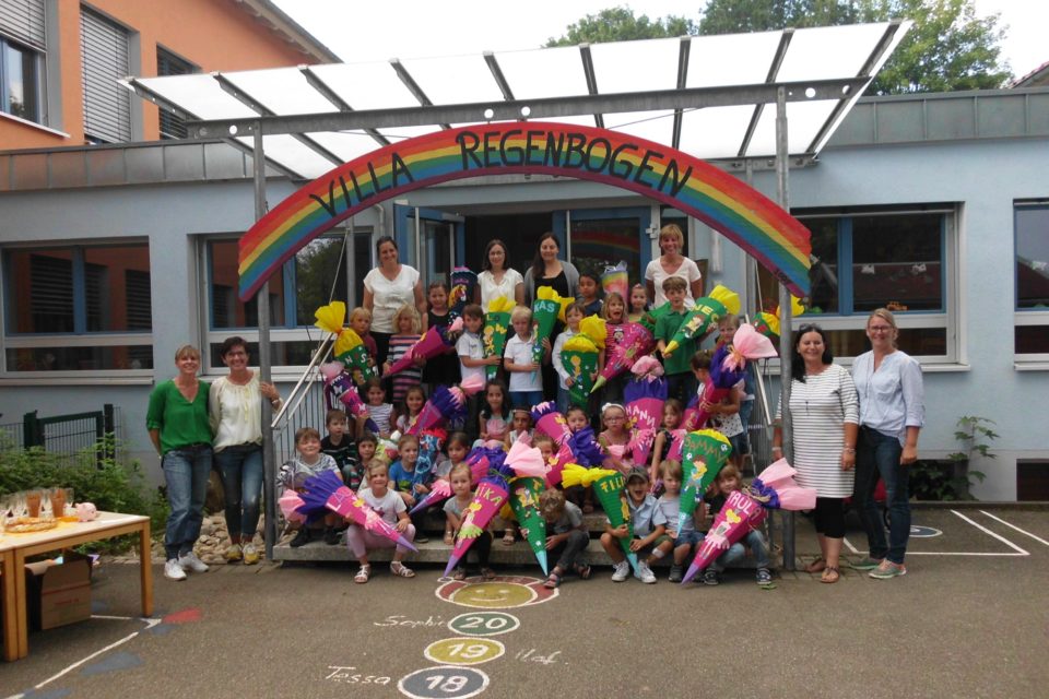 Am vergangenen Montag verabschiedeten sich 34 Schulanfänger von ihrem Kindergarten Villa Regenbogen und ihren Erzieherinnen.