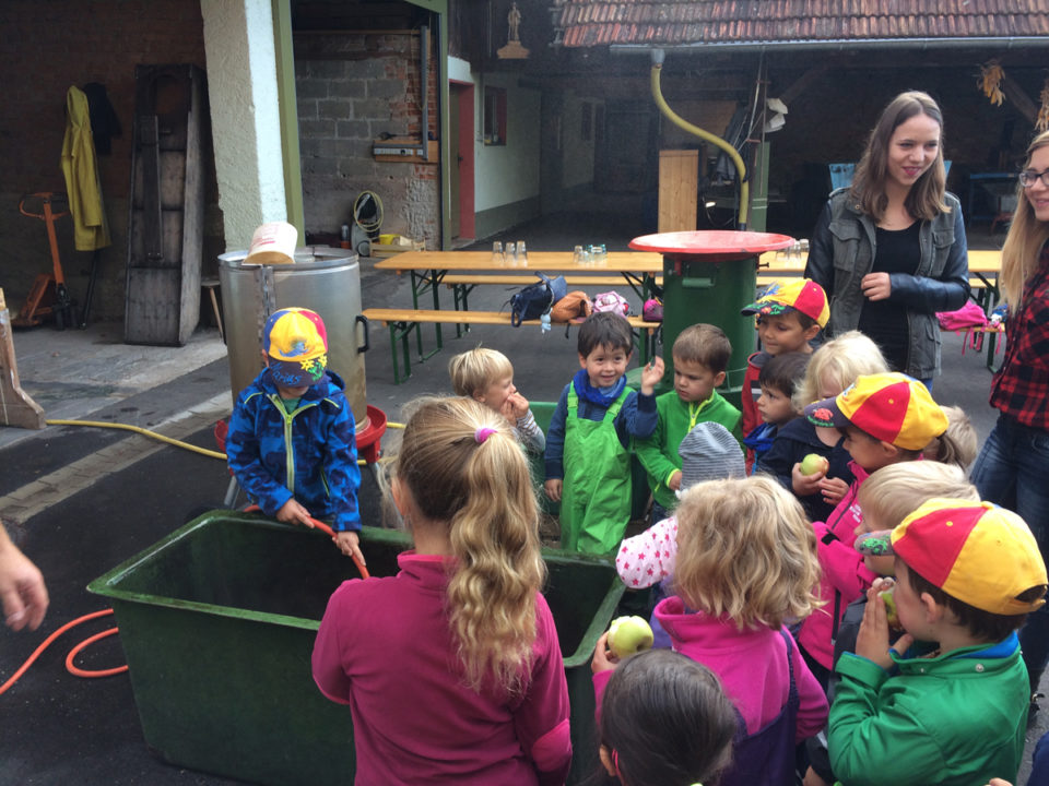 Für die September-Ausgabe des monatlichen Waldtages am vergangenen Freitag hatten sich die Erzieherinnen des Kindergartens »Wirbelwind« etwas ganz besonderes überlegt – es ging zum Äpfelsammeln und zum Mosten.