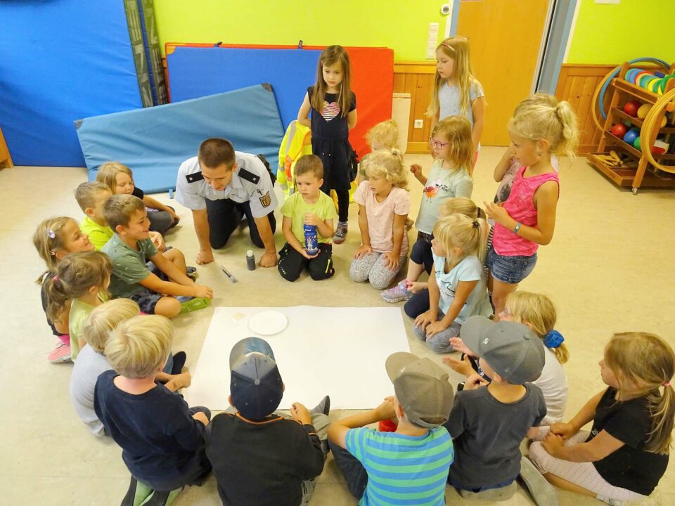 Die Schulfüchse vom Kinderhaus Sonnenblume bekamen Besuch von der Polizei.