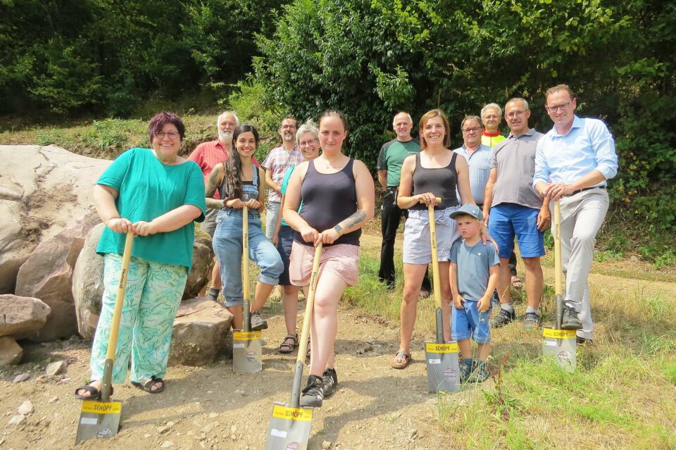 Am Montagnachmittag trafen sich Bürgermeister Richard Weith, die Verantwortlichen der Bauprojekts, die Erzieherinnen und Vertreterinnen des Fördervereins am Standort der Waldgruppe. Die Gruppe hat sich dort schon mit zwei Bauwagen und einer Sitzgruppe eingerichtet.