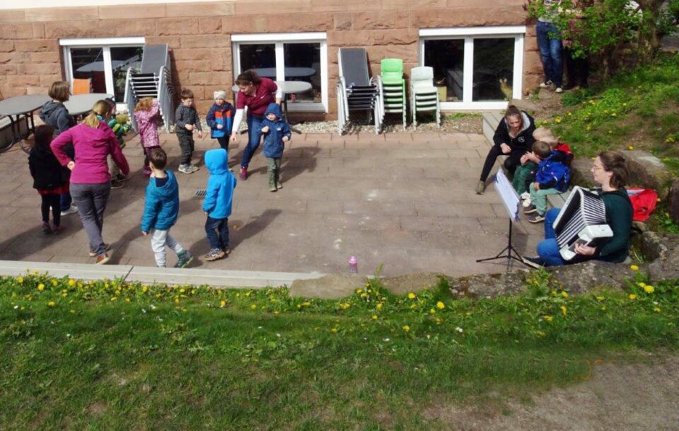 Kindervolkstanzgruppe zu Besuch im Kinderhaus