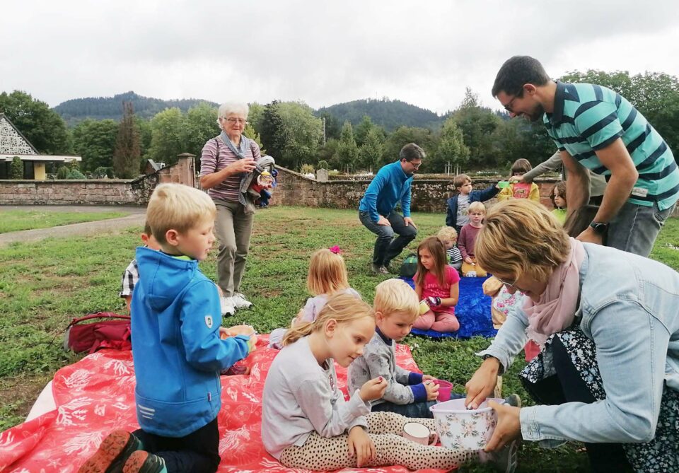 Am vergangenen Sonntag machten sich rund zwanzig Kinder mit ihren Eltern auf den Weg zur Konradskapelle. Unterwegs erwarteten sie verschiedene Stationen: Am Konradsbrunnen durfte sich jeder erfrischen, um für den Aufstieg gewappnet zu sein.