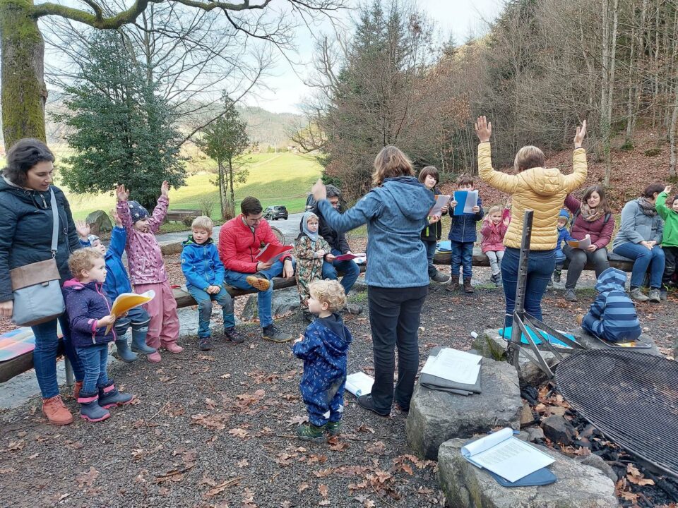 Um die fünfzehn Kinder machten sich am Silvestermorgen gemeinsam mit ihren Eltern auf den Weg zur Luisenhütte, um dort an der Silvesterandacht der Kinderkirche teilzunehmen.
