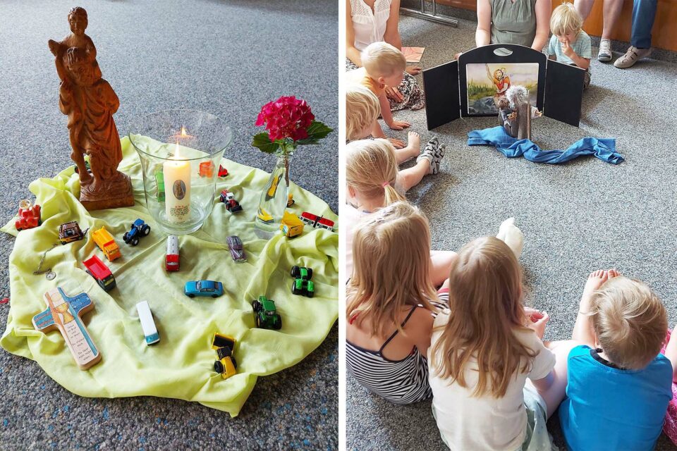 Zur Kinderkirche kamen die kleinen Besucher mit ihren Fahrzeugen, um die Geschichte vom Heiligen Christophorus zu hören.