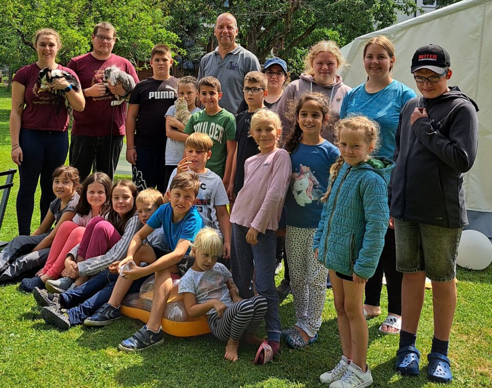 Die Kinder der Ferienbetreuung der Stadt Zell a. H. verbrachten einen naturnahen Vormittag mit dem Kleintierzuchtverein C855 Zell-Unterharmersbach-Nordrach bei Familie Bühler in Neuhausen.