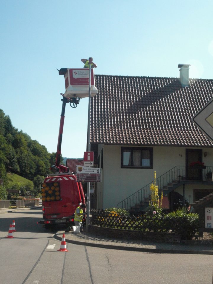 In den letzten Tagen haben Mitarbeiter des Elektrizitätswerks Mittelbaden damit begonnen, entlang der L94 ab Dorfstraße talaufwärts bis einschließlich Teilbereich Obertal-Straße die alte Straßenbeleuchtung auf neue LED-Technik umzurüsten.