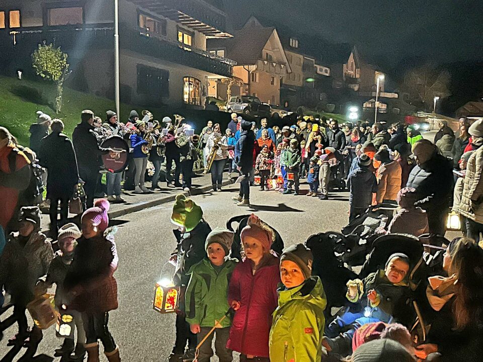 Der Sankt-Martins-Umzug in Prinzbach erfreut sich immer größerer Beliebtheit. Familientreffen auf dem Schulhof.