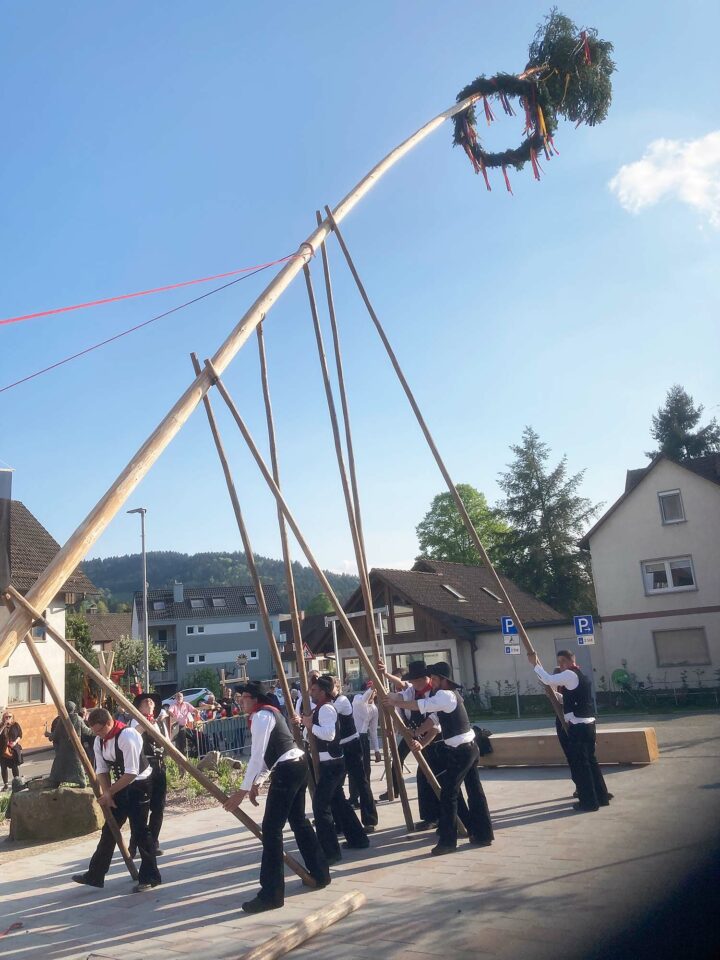 Zum Glück wurde der Maibaum nicht geklaut – mit Musik, Muskelkraft und Magenfreuden ging es in Biberach hinein in den Wonnemonat.