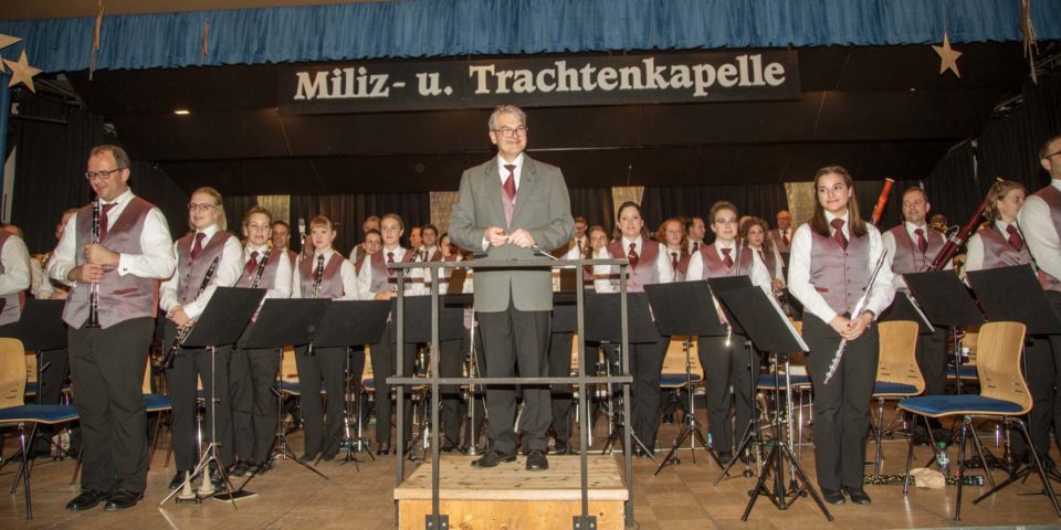 Gleich zwei Premieren feiert die Miliz- und Trachtenkapelle mit ihrem traditionellen Weihnachtskonzert am 26. Dezember 2019 in der Reichstalhalle. Für ihren Dirigenten Rüdiger Müller ist es sein erstes Jahreskonzert und mit dem Werk »The Seeker« des Komponisten David Maslanka steht im Programm dessen deutsche Erstaufführung.