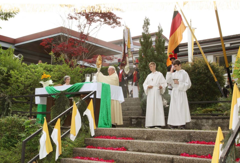 Traditionell prägte religiöses Brauchtum die Fronleichnamsprozession der Oberharmersbacher Pfarrei St. Gallus. Die Traditionsvereine in ihren farbenprächtigen Uniformen und der gezierte Prozessionsweg sind feste Bestandteile dieses kirchlichen Festtages.