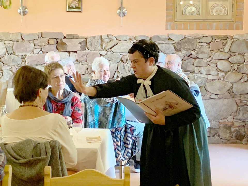 „Sagenhafter Moospfaffabend“ im Höhengasthaus „Vogt auf Mühlstein“ war wieder ein voller Erfolg. Als „Bäuerin Zetzel“ wusste Michaela Neuberger mit ihrem Publikum gekonnt zu spielen.