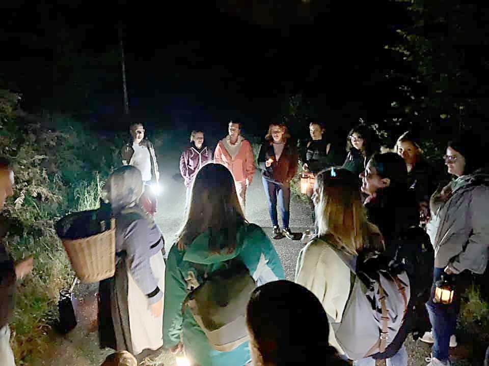 Rund 30 Gäste konnten die Schneiderin (Angela Boschert) und ihr »Lehrmaidli« (Michaela Neuberger) zur Laternenwanderung willkommen heißen.
