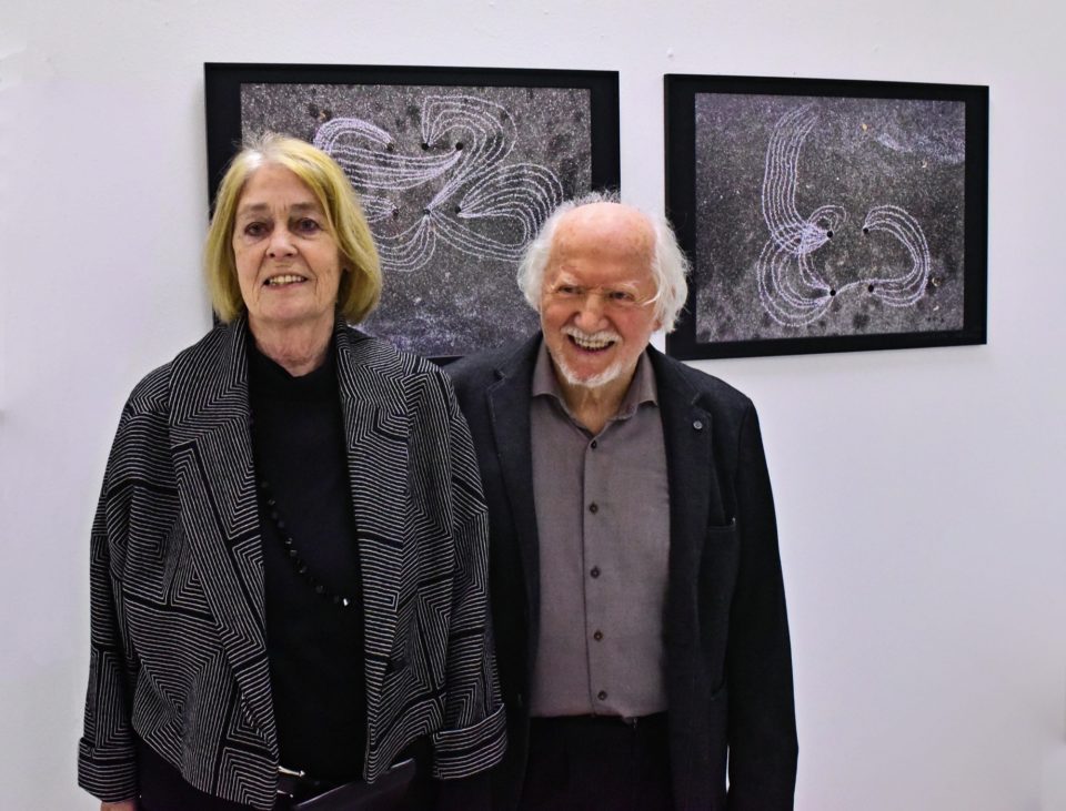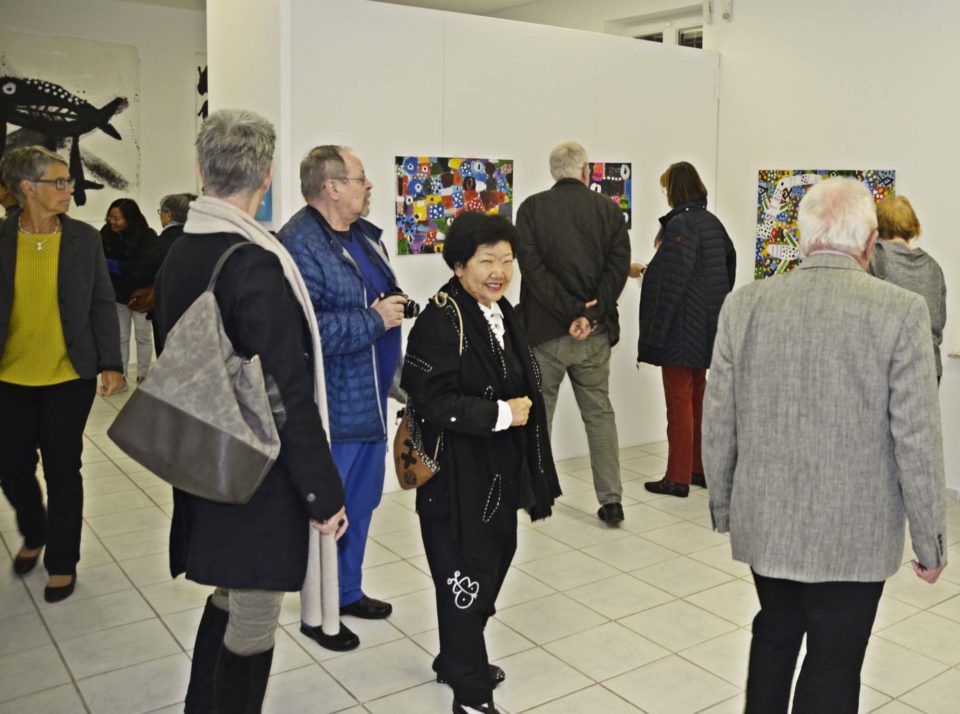 In der Ausstellungsreihe »4+1 – Kunst in wechselnden Positionen« ist schnell erkennbar die Gegensätzlichkeit beider Künstler. Der impulsive Umgang mit Farben ist typisch für das dynamische Werk K.R.H. Sonderborgs. Im Gegensatz dazu die klaren, von Linien bestimmten Asphaltbilder seiner einstigen Studentin Hildegard Esslinger, die am Vernissageabend zugegen war.