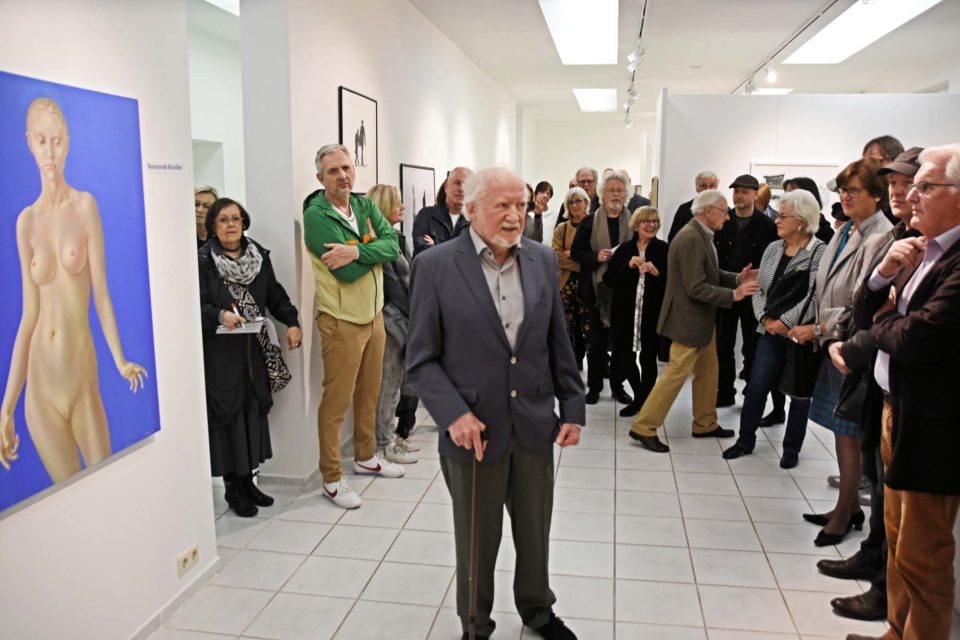 Am vergangenen Samstag hatte Galerist und Kunstsammler Walter Bischoff zur Eröffnung der neuen Sonderausstellung »Vier plus Eins« eingeladen. Zahlreiche Gäste, darunter Künstler, Sammler und Kunstinteressierte trafen sich in den Galerieräumen, wo sie Walter Bischoff mit einer kurzen Einführung zur Ausstellung begrüßte.