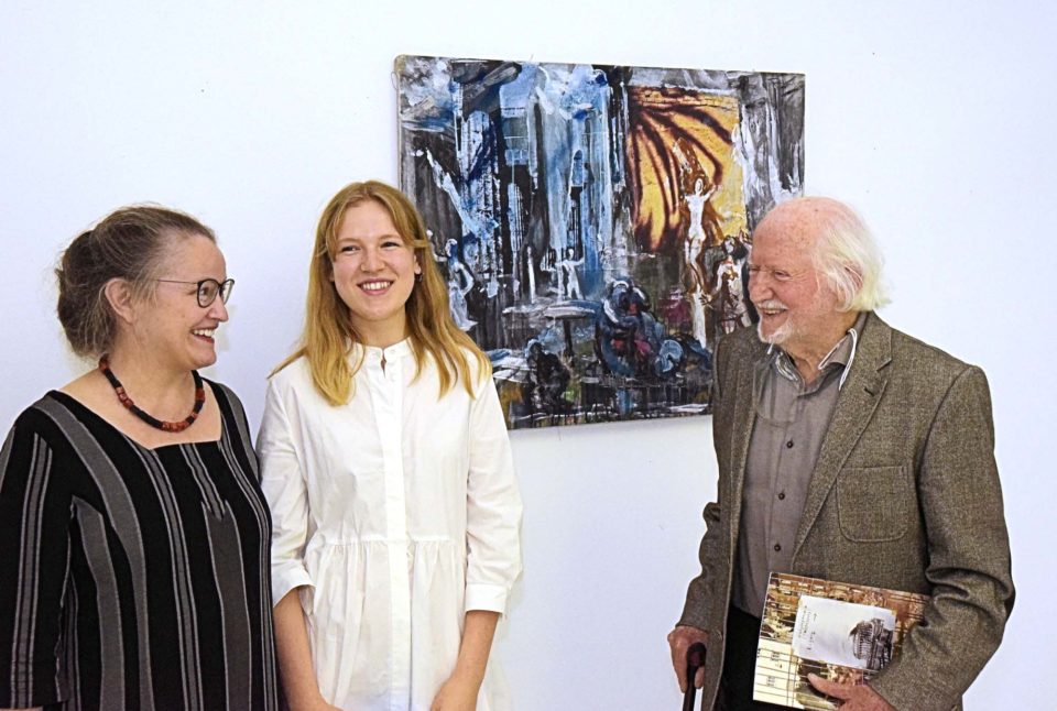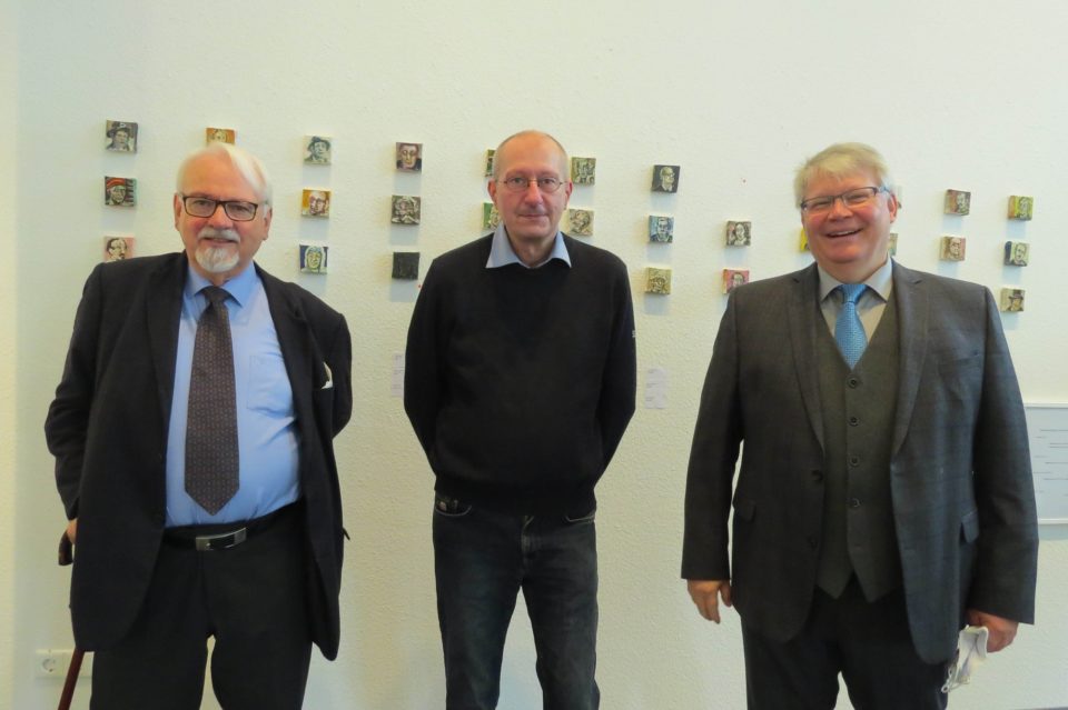 »Große mal klein« – dieser Titel kennzeichnet die Ausstellung in der Galerie Arthus, zu der Galerist Bertin Gentges am Sonntag zu der Vernissage eingeladen hatte. Dr. Friedhelm Häring, Kunsthistoriker und Museumsdirektor a. D., sprach zur Einführung.