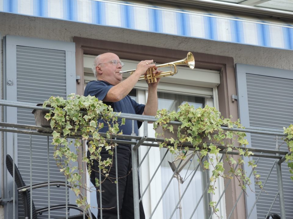Am Sonntagabend hat Heinrich Gießler zum siebten Mal vom häuslichen Balkon Beethovens »Ode an die Freude« mit seiner Trompete gespielt.