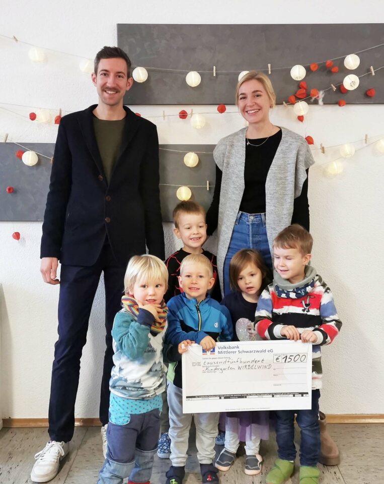 Musikverein Unterentersbach spendet 1500 Euro an den Kindergarten „Wirbelwind“.