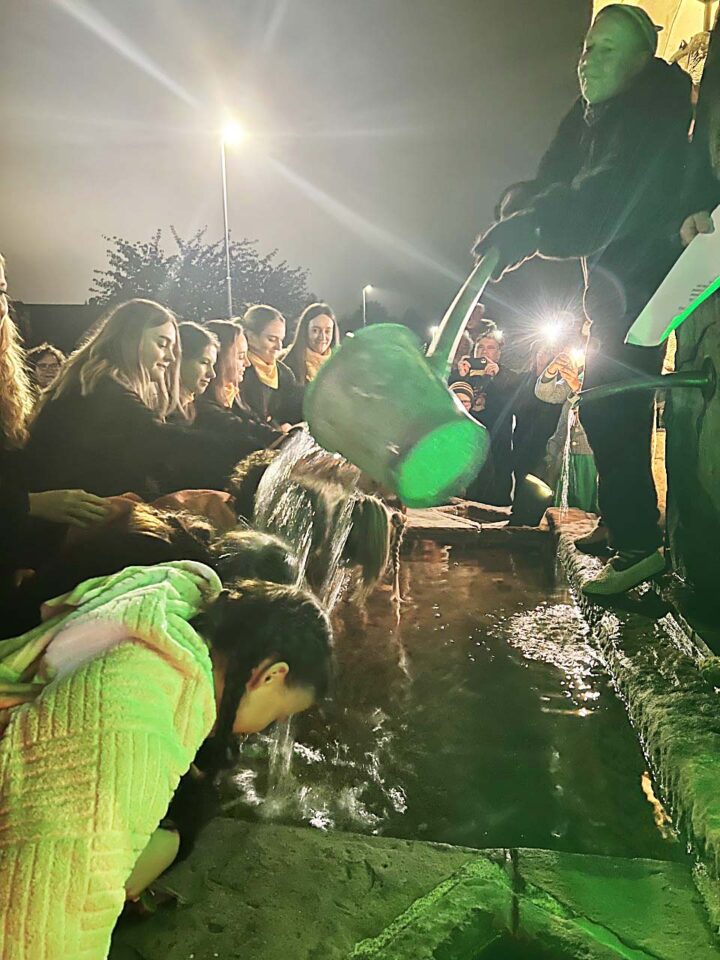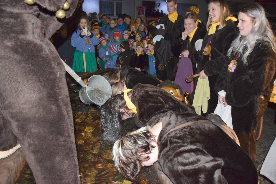 Sieben Biber und neun Reiherhexen wurden am Narrenbrunnen feierlich getauft – Nicole Reif traf den Narrennerv und ist Mottokönigin.
