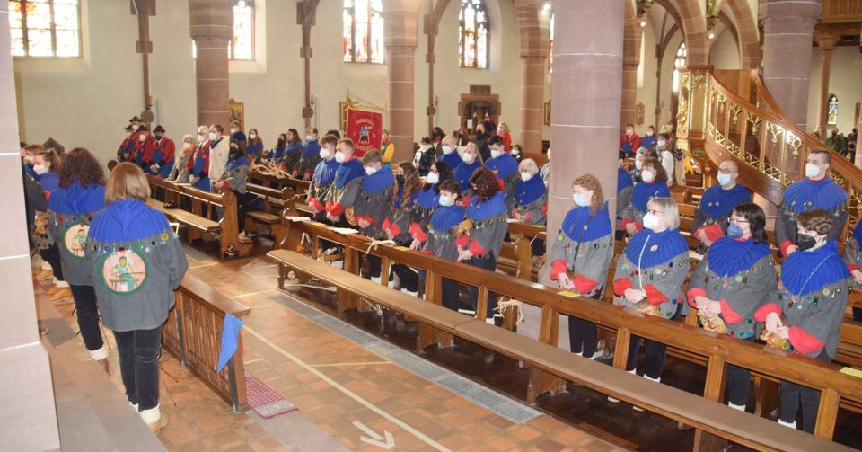 Am Fasendsonntagmorgen findet traditionell eine Narrenmesse in der Nordracher Pfarr kirche statt. Pfarrer Gerner feierte sie mit dem Narrenrat und zahlreichen Glashansele.