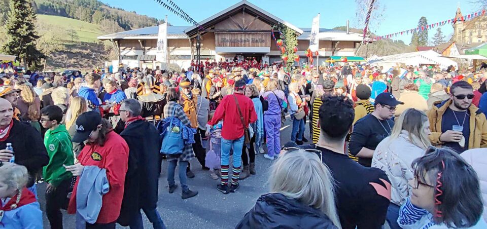 Beim Hästrägertreffen feierten sechs Gastzünfte und Guggenmusiken, sowie diverse Tanzgruppen und Fasentgemeinschaften gemeinsam mit der Narrenzunft Nordrach. Morgen geht es mit dem Zunftabend weiter.