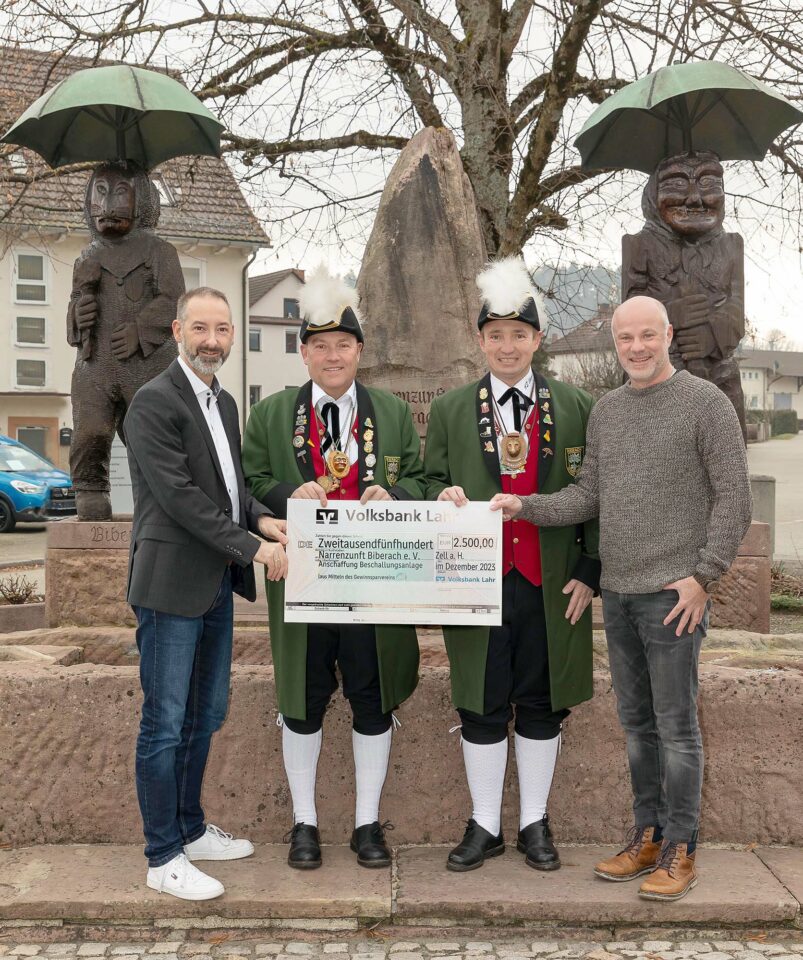 Pünktlich zur Fastnacht erhält die Narrenzunft Biberach e. V. eine Unter stützung der Volksbank Lahr eG für die Anschaffung einer neuen Beschallungsanlage.