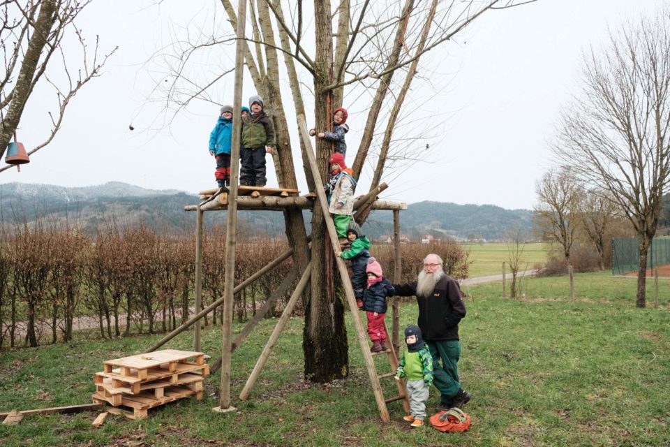 Geschäftige Betriebssamkeit herrscht seit Anfang Dezember letzten Jahres auf dem ehemaligen Kletterturm-Gelände am Schwimmbad. Der Naturkindergarten hat die Arbeit aufgenommen. Das Projekt wächst und gedeiht. Aktuell wird ein Baumhaus gebaut und die Ankunft der lang ersehnten Unterkunft ist für das kommende Wochenende avisiert.
