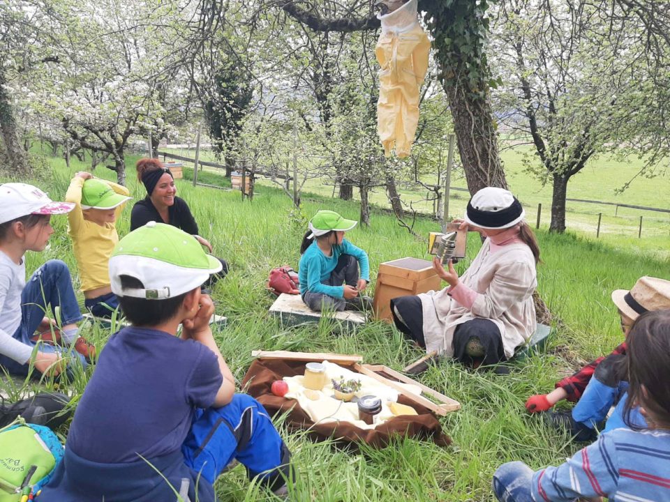 Sechs Schulanfänger besuchten letzte Woche den Bienenstand von Hobbyimker Christian Heizmann in Bruch. Sie lernten bei ihrem Schulanfängerausflug welch wichtige Rolle die Bienen für Mensch und Natur spielen.