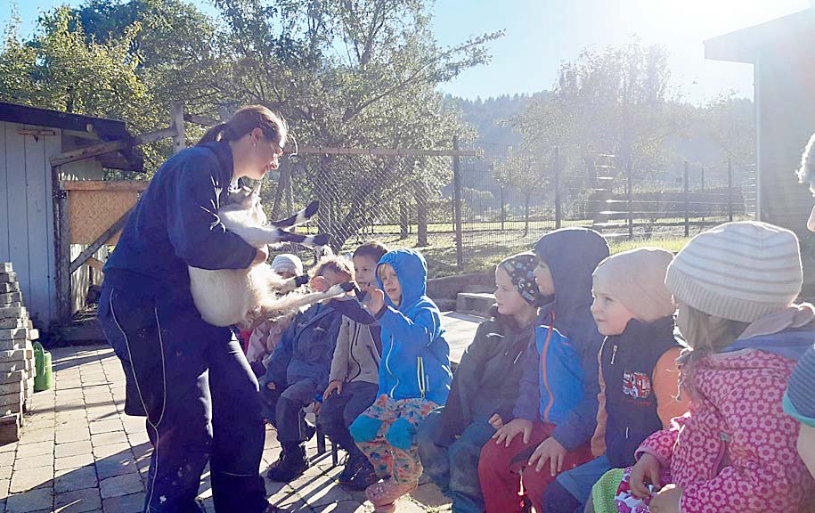 Biberachs neuer Bürgermeister Jonas Breig hat den Naturkinder garten besucht. Auf der Tagesordnung stand ein Bauernhoftag auf dem Kooperationshof im Bruch, wie er alle zwei Wochen stattfindet.